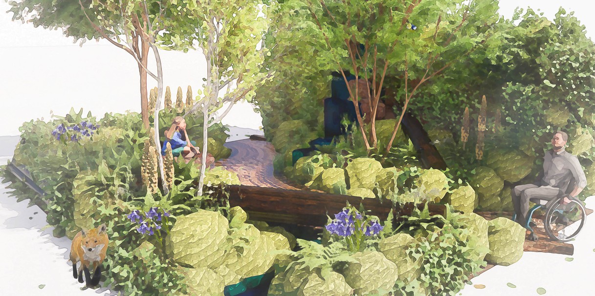 - Visitors will follow a path through boulders and fern-lined trails, under a canopy of native trees created from hazels, field maples and silver birch from the show garden.